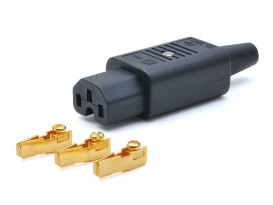 私たちはケーブルもさることながら、その出入り口である接点プラグもやはり高品質な物が良いと考えています。そこで、作業性がよく、信頼性の高いIECプラグを作りました。接点による伝送ロス、磁場の乱れを押さえるため特に接点部分を重点的に改良を加えました。もちろん音質は最高級!!