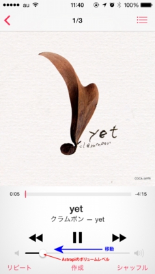 2. 約10秒程そのままお待ちください。接続が認識されると、音楽再生アプリのボリュームバーがAstrapiに対応したレベルに移動します。