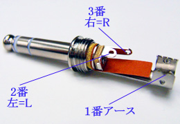 注意;ミニキャノン側は2番が右=Rですが、ステレオフォンプラグ(P-240T)は2番が左=Lになるので、間違えないように結線をしましょう。