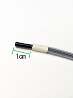 最初にケーブルのシースと絶縁体を剥きます。外のシースは約1cm、中の絶縁体は約5mm位剥きます。今回の製作例ではシールド部分にも絶縁をしておきます。写真2の様にシールドに1.5mmの収縮チューブを被せ、更にその上に3mmの収縮チューブを被せます。