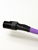 L・R2本とも外装チューブを被せたら、更に2本+アース線の上にFL-9パープルを被せ、両端にスミチューブB2(3×)をかけ、5pinソケットにTICキャップを被せます。