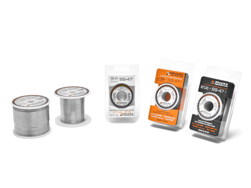 Of course, these mixing ratios were not determined based on numerical data and workability alone. We believe that sound quality should be the top priority in order to be called an audio solder. SS-47" is the result of many hearings and tests of prototype models with various mixing ratios.