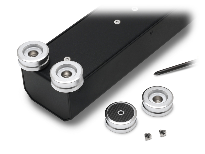 Normally, rubber feet are used to transmit vibrations to the floor, but this product comes standard with high-precision brass spikes specially machined from brass material. In addition, honey-nite washers, which are known for their damping properties, are inserted between the spikes to suppress vibrations from the floor and the enclosure, reducing the "squeal" caused by the enclosure.