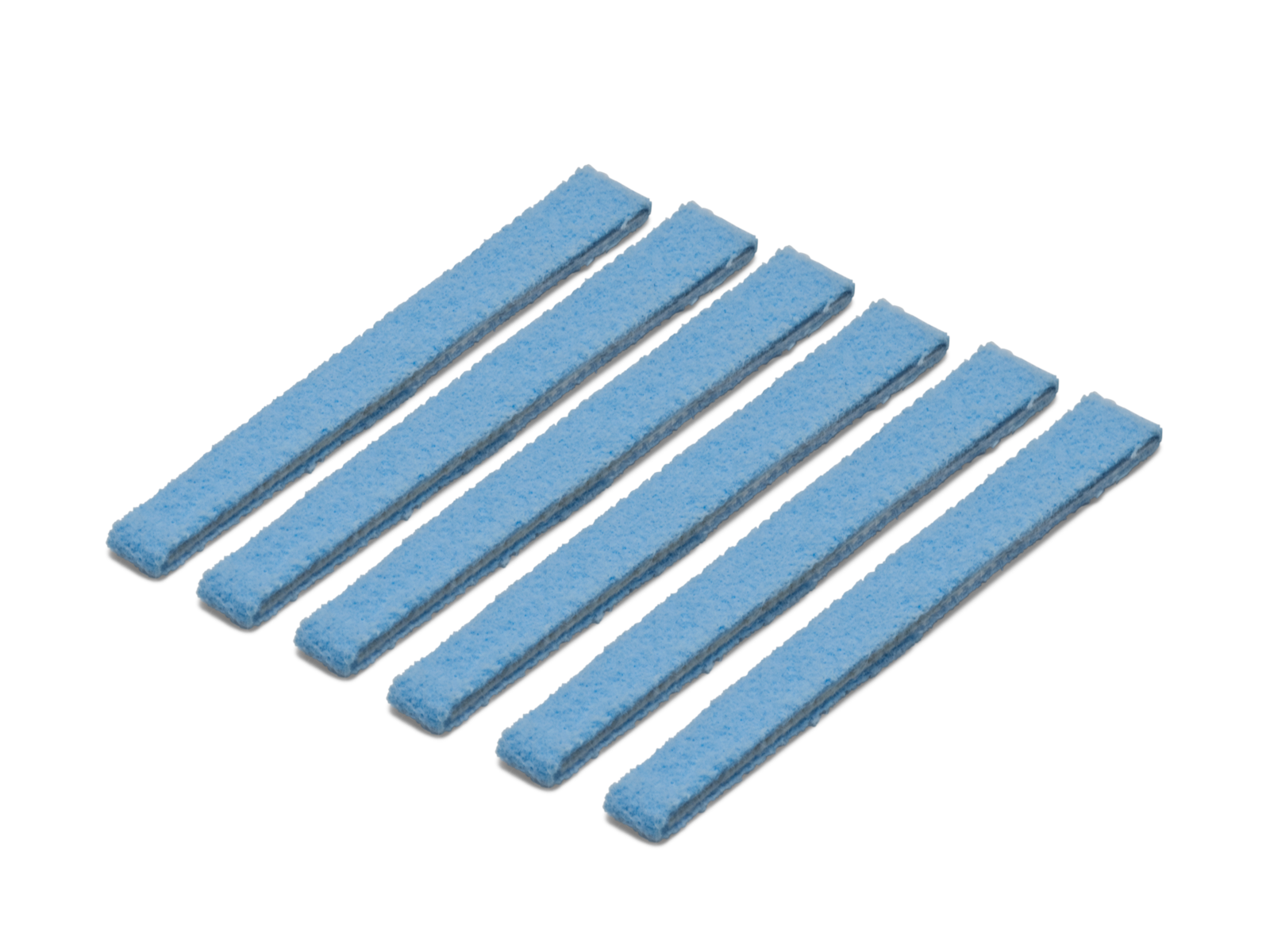 The "Cleaning Stick EC" is a thin and sturdy felt stick impregnated with abrasives and wax. The felt fabric is soft enough to provide optimum abrasive power and is attached to a thin, bend-resistant glass epoxy plate that has excellent electrical insulation properties. The ultra-fine abrasive particles contained in the felt powerfully remove oxide film and dust stuck to the electrode. High-grade fatty acid-based waxes with excellent protective power inhibit the re-formation of oxide film on the electrode.
