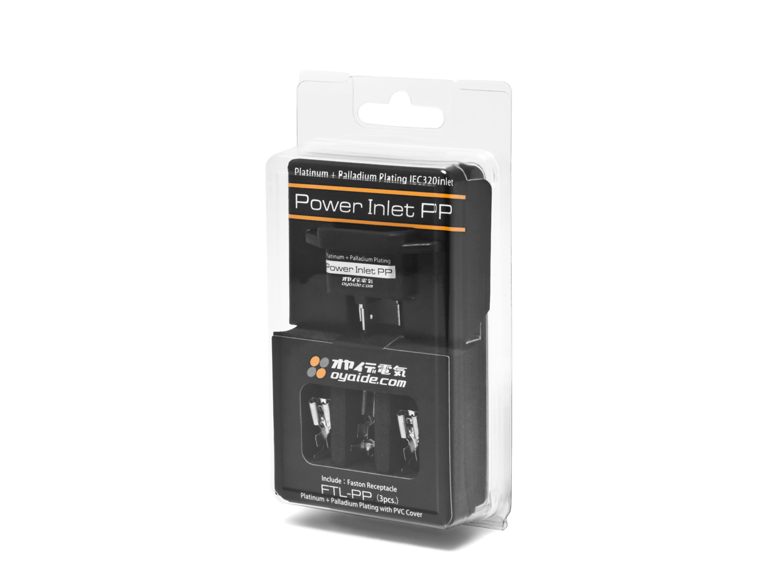 The "POWER INLET PP" is a power inlet specially designed for audio equipment with a phosphor bronze blade that has been buffed to a mirror finish and finished with platinum and palladium plating.