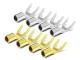 Oyaide Electric doesn't hesitate to take time-consuming process. The inside of Y shape is cut in two-size adjustment (6mm and 8mm) to be fitted to almost all binding posts.