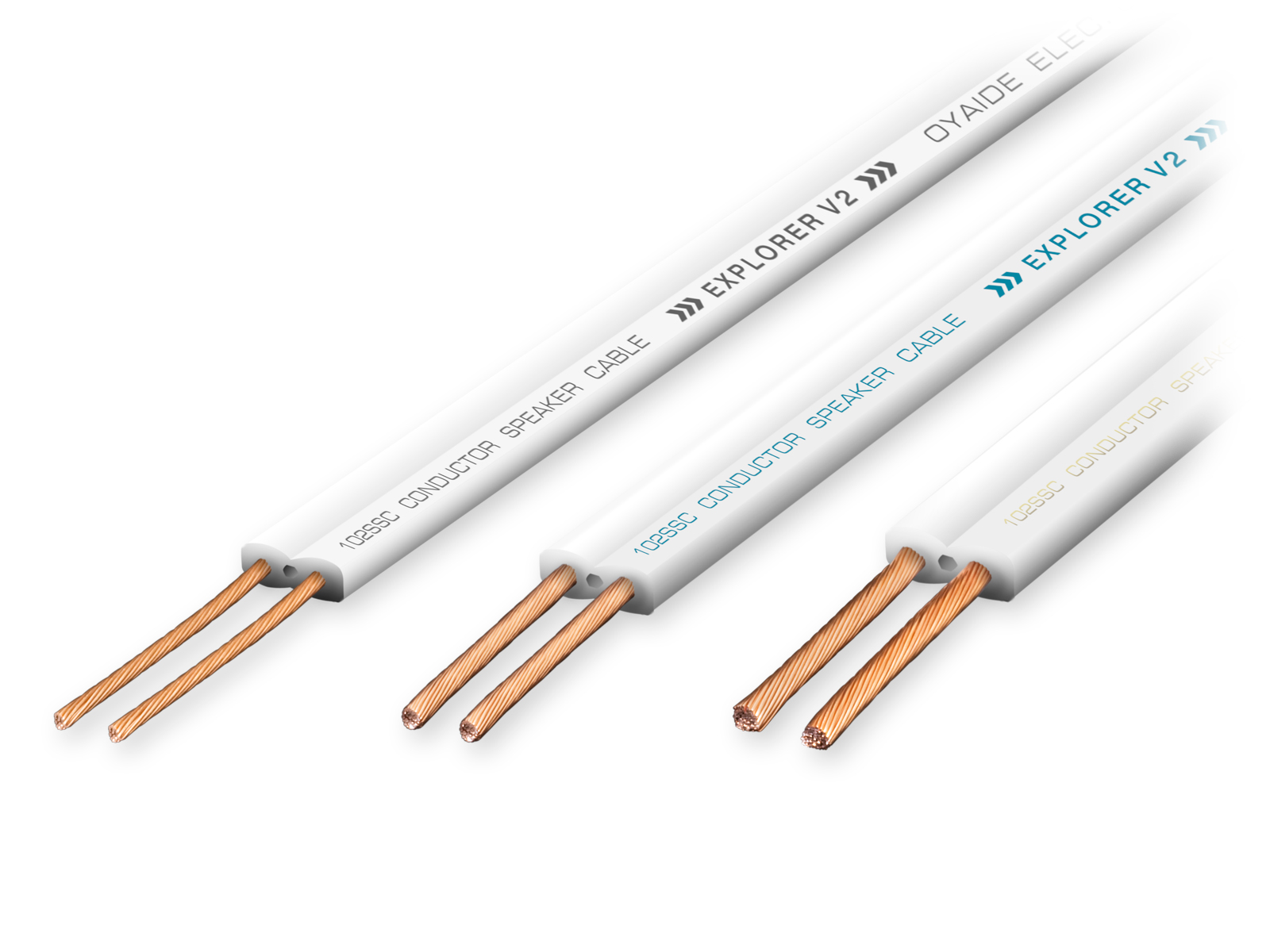 EXPLORER V2 is available in three different thicknesses: 0.75sq., 1.25sq., and 2.0sq.. These are available to meet a wide range of needs such as pure audio, home theater, bi-wire connection, usage distance, cost, and so on.