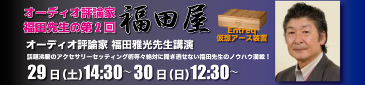 - マックスオーディオ主催の第11回九州オーディオフェアのオーディオアクセサリーイベントにて、Entreq社Tellus/SilverTelusの試聴を予定しております。講師はオーディオ評論家の福田雅光先生。開催日時は以下の通り。詳しくはマックスオーディオへお問い合わせください。