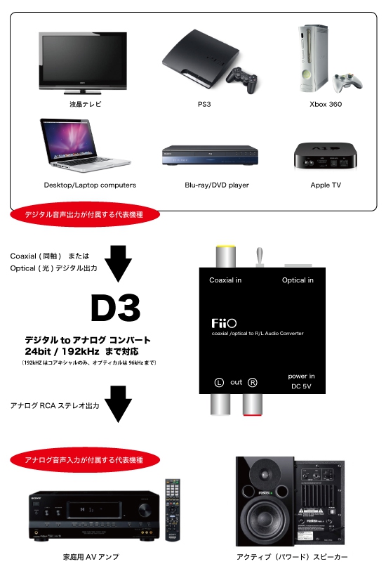 - 最大24bit/192KHz をサポート(コアキシャルのみ)