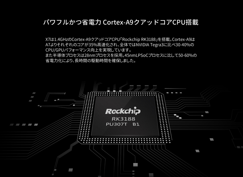 | CPU (SOC) | Rockchip RK3188 (Quad core / 1.4GHz) |