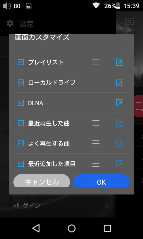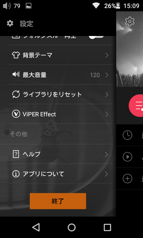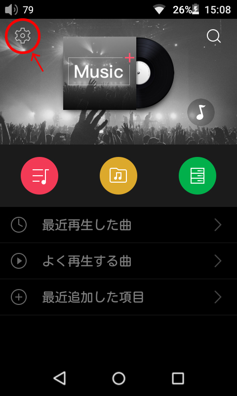 1. FiiO Music でメインメニュー左上部のギア状のアイコンからアプリの設定画面を開き、「背景テーマ」をクリックします。