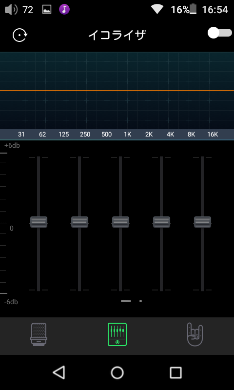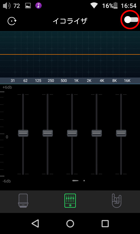 3. イコライザをONにするには画面左上のトグルスイッチを右にスワイプします。