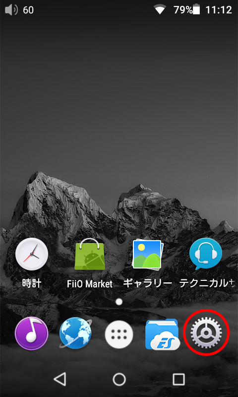 2.Androidモードではホーム画面最下段右端のギア状のアイコンをクリックし、本体設定画面を呼び出します。