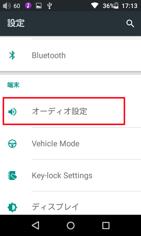 3. 本体の設定メニューより、「オーディオ設定」をクリックします。