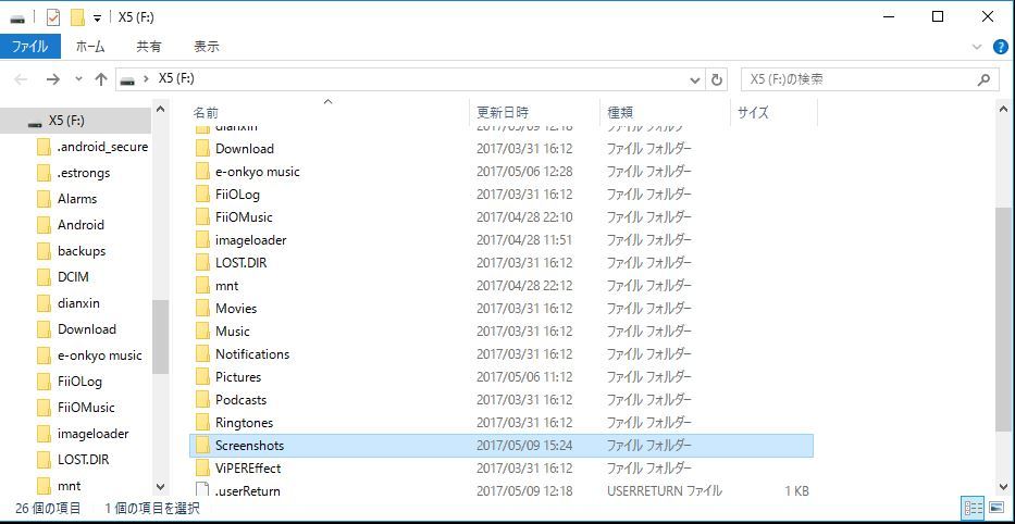 また、パソコンで閲覧するには、本体をストレージモードにしてPC/Macと接続後、ストレージ内「screenshots」フォルダをブラウズすると確認することが出来ます。