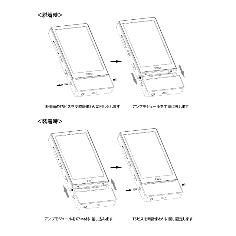 本体側面のT5星形ビスを付属のスクリュードライバーを使用して外し、モジュールを交換します。