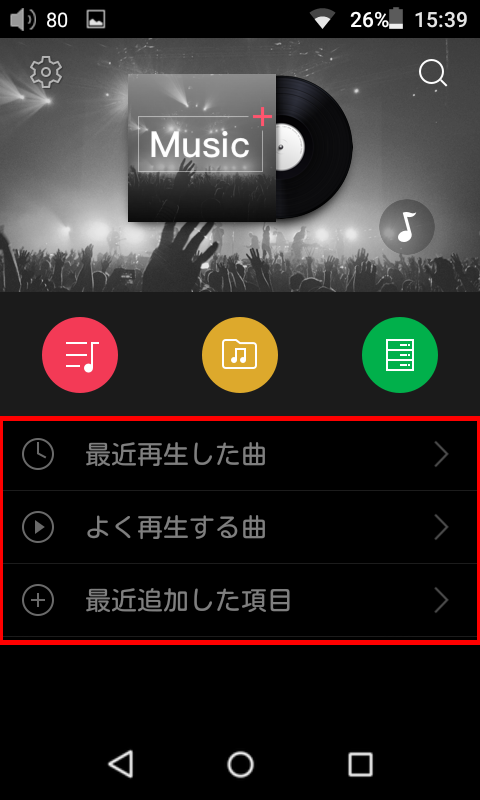最近再生した曲 / よく再生する曲 / 最近追加した項目
