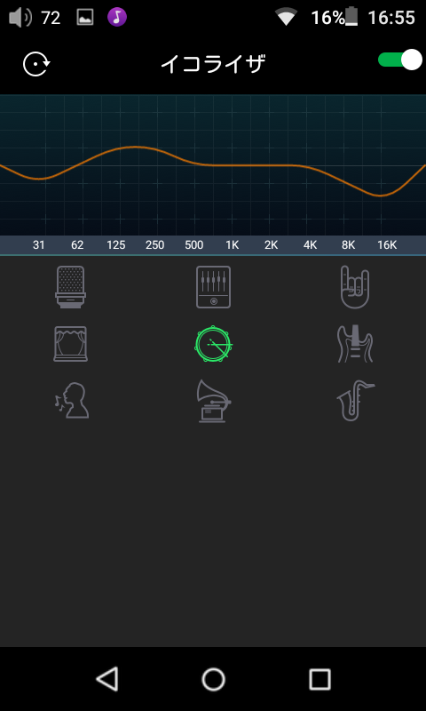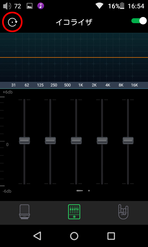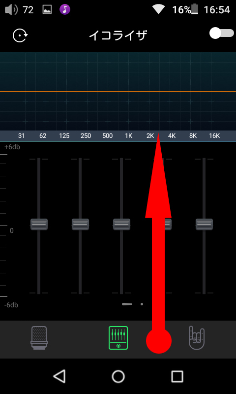 3. イコライザをONにするには画面左上のトグルスイッチを右にスワイプします。