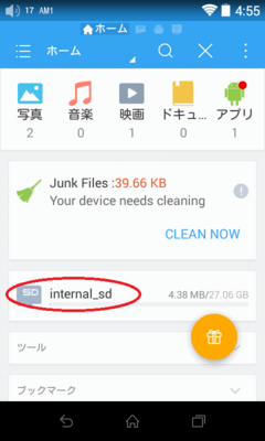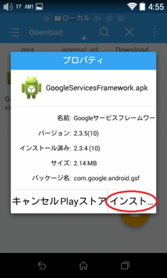 2. 外部リンクよりGoogle services frameworkファイルをお手元のPCからダウンロードします。X7内に下記ダウンロードリンクよりダウンロードしたGoogleServicesFramework.apkファイルを任意の保存先フォルダにコピーし、ファイルマネージャアプリ「ESファイル」から保存先フォルダを選択しインストールします。