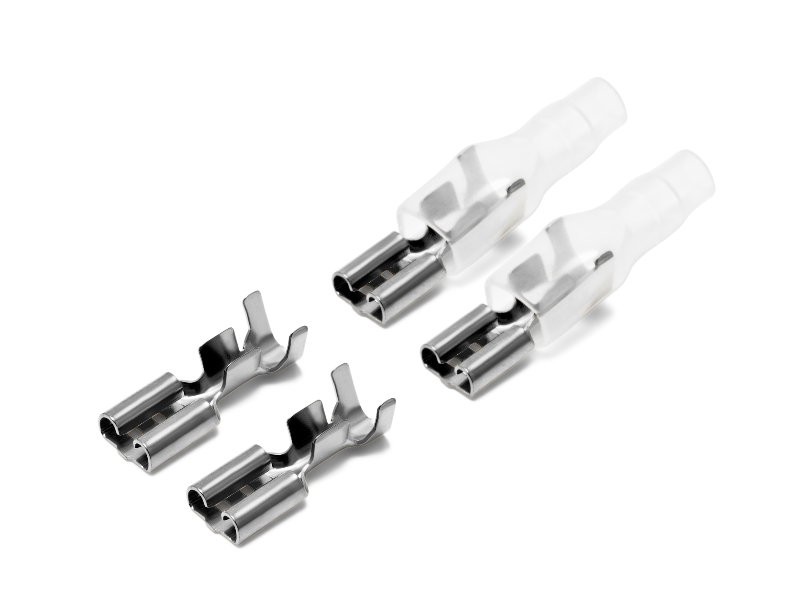F6.35(6.35mm幅x0.8mm厚)電極およびファストン端子 大 オス型に勘合可能。以下のような用途に好適です。