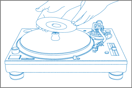 使い方はいたって簡単。ドーナツ盤を聴くには、まずSTB-EPをスピンドルにセットします。