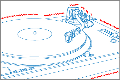 レコードからなぜ音楽が聴けるかというと、レコードの音溝に刻まれたわずかな高低差をレコード針(カートリッジ)の針先がトレースし、その機械的な振動が電気信号に変換され、アンプやスピーカーを介して我々の耳に届くのです。しかし、レコードを回すモーターやターンテーブルは回転すると当時に不要な振動も発しています。不要な振動が針先に伝わると、音溝の信号と混ざり合って音がもわ~っと濁るのです。