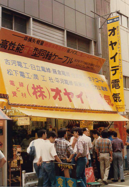 現在のビックカメラAKIBAのある中央通りに面した一角で、創業当初はマグネットワイヤーや絶縁材料などの切り売りからスタート。