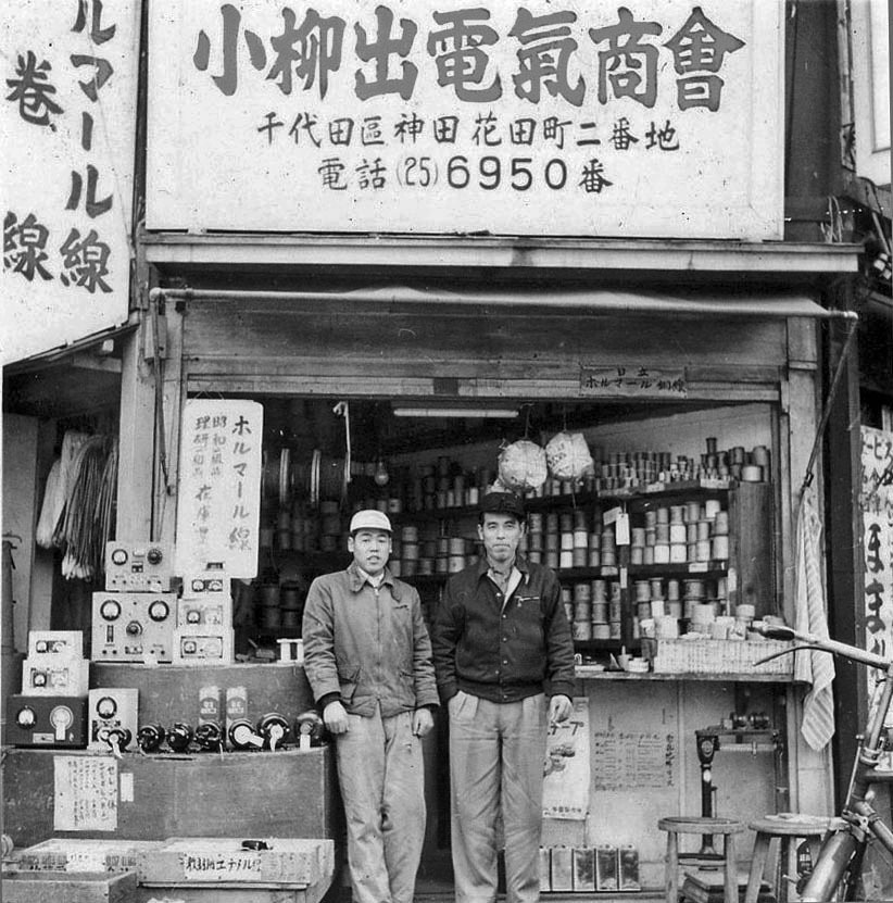 秋葉原中央通り、現在のビックカメラAKIBAの場所にて創業者の小柳出 一二が電線小売業を開始