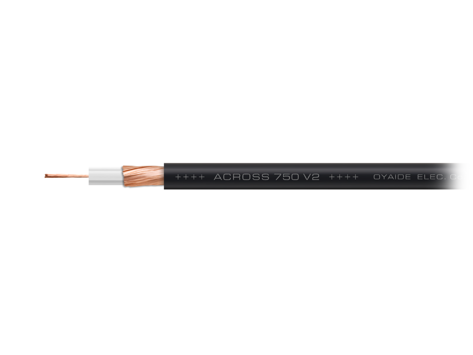 外装シースにはオヤイデ電気伝統のオーディオ専用ハロゲンフリーシースを採用し、上品でエレガントな仕上がりのベルーガカラー(キャビア・ブラック)をチョイス。どんなオーディオシステムにも違和感無くマッチングします。シース刻印に”ACROSS750 V2 ”“102SSC”をマーキングし、V2モデルを明示。